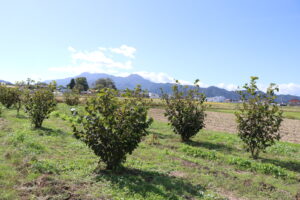 ヘーゼルナッツの畑。肥料には馬ふん堆肥を使用