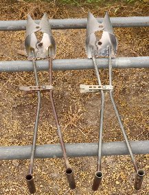 葉タバコ用の簡易移植器にトウモロコシ苗の定植に使用