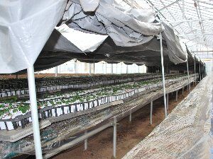 苗の上にシートをかけ、短日処理で育ててクリスマスに収穫を合わせる