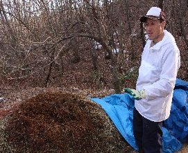 20年までは、追肥のみ散布していた。「初期生育を促すため」と、今年から元肥づくりを始めた。元肥には、稲わら、もみ殻に米ぬか100㌔を混ぜ、微生物の働きを促す光合成細菌を入れる。「光合成細菌によって発酵スピードが速くなることが分かった」