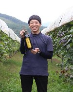 【中部】花巻市大迫町の鈴木寛太さん(29)は、ワイン用ブドウ「ロースラー」を栽培し、自身が手掛けたブドウを使用した「KANTA WINE」を販売する。「ロースラーは繊細な品種。栽培技術を磨きながら、ワインの製造本数を増やしたい」と意気込む。