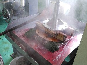 煮出した片面紫蘇を圧搾。今夏は15回実施した(写真提供=川井振興公社)