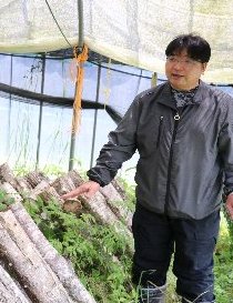 両親が栽培していた原木シイタケを継いで5年目になります。春は露地で、冬場はビニールハウス内で栽培しています。今年は、乾椎茸品評会で2年連続の林野庁長官賞を受賞しました。