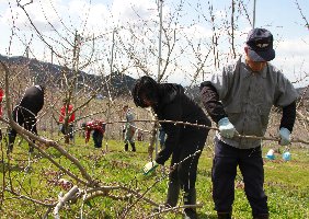 【胆江】奥州市江刺伊手の株式会社菅野農園では、障がい者施設の利用者に農作業を依頼することで、従業員の労力低減を図り、果樹の品質向上につなげている。さらに、農作業を通して施設利用者に農業の魅力を伝え、地域の活性化を目指す。