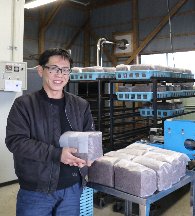 「当初は菌床を購入していたが、購入費用が大きかった。自分で作ることで、購入費用の削減につながった」と大鹿糠さん。「収穫したい時期や期間などに合わせて原料の配合を変えることで、独自の菌床ブロックを作ることができる。1つのブロックから1㌔以上のシイタケを収穫することが目標。短期間で収穫量が多い菌床ブロックを作りたい」