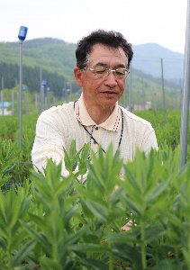 1993年に本格的に就農した八幡さんは、「いわてっこ」「ヒメノモチ」を中心に、リンドウも栽培。「7月から10月末まで出荷ができる」と、早咲き「安代の夏」や遅咲き「安代の夕映」など6品種を手掛ける。また、天候に左右されずにリンドウを出荷するため、元住宅を作業場に改装した。
