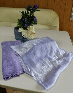 リンドウで染めたシルクのストール。染物以外に、ハーバリウムなども制作している