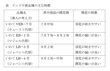生産現場から頂花(リンドウの一番上の花)が開花しやすく、形質や開花時期のばらつきが少ない品種の育成が望まれていることから、岩手県農業研究センター技術部野菜花き研究室は、既存の県育成品種の代替となる4品種(極早生・早生・晩生2種)を開発した。(表参照)