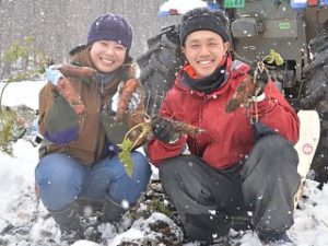 【岩手町】積雪の多い岩手町の特性を生かした冬場の栽培品目として、注目を集めている冬期収穫のニンジン。雪の下から収穫するニンジンは甘くて臭いも少ないと好評だ。同町川口で約150㌃のニンジンを栽培する高村豊さん(28)、成美さん(27)夫妻は現在、収穫のピークを迎えている。