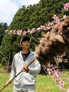 【宮古市】「長野県で食べたモモの味にほれて地元でも作りたいと思いました」と話すのは、家族で果樹園を経営する宮古市崎山の山崎慎弥さん(24)だ。4年前からモモを植樹し、丁寧な栽培・園地管理などを行い、甘くておいしいモモを市内から提供していこうとまい進している。