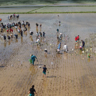 【平泉町】農事組合法人アグリ平泉(佐々木正代表理事)が主催する「ライス・アートinひらいずみ」の田植え体験が平泉町長島で先ごろ開催された。地元の参加者をはじめ、グリーンツーリズムで農業体験を行う神奈川県の中学生も参加。今…