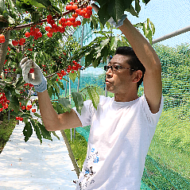 【二戸市】雨よけハウスを使用してサクランボを栽培している二戸市の荒谷一也さん(46)。「佐藤錦」や「紅秀峰」「ナポレオン」など8種類のサクランボ約200本を40㌃の面積で栽培、出荷している。中でも糖度が高くて粒が大きく、…